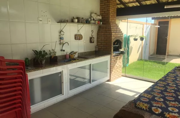 Linda casa para venda. Ela possui 3 quartos (sendo 2 suítes), sala, cozinha, banheiro, área de lazer, churrasqueira, garagem e escritório.